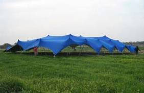 The Bedouin tent is an alternative option to the standard Pole-Type marquee, offering a unique, futuristic look as well as a practical, functional design. Selling Points: The Bedouin is remarkably easy and quick to install, with the largest option assembled in less than 30 minutes, with three relatively unskilled persons. Uses: Due to the ease of assembly, the Bedouin is able to be hired out as a 'stand-by' marquee and can be easily assembled by the client in the event of inclement weather. Sizes: The Bedouin is available in the following modules: 7.5 x 10m Bedome ™ Clearspan Tensile Marquee